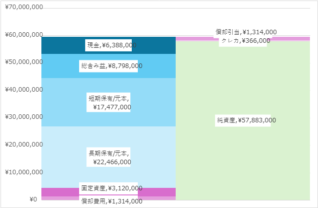 - 2024年の期初純資産は、以下の50,043,000円(再掲)から、期末の純資産は上部57,883,000円で、増加しました
