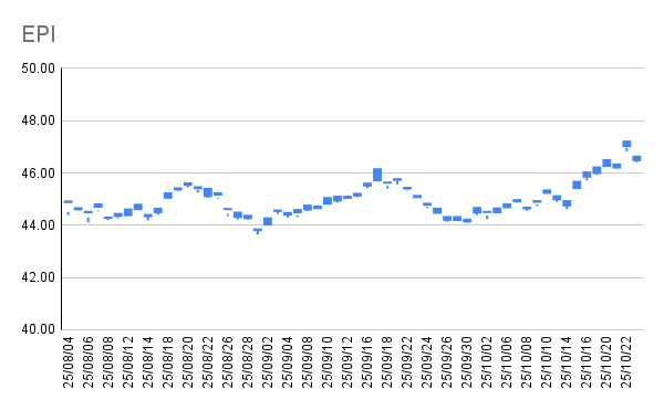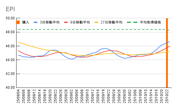 | EPI | 614 株 | 48.28 USD | 46.19 USD | 4,374,064 円 +8,796 円 |