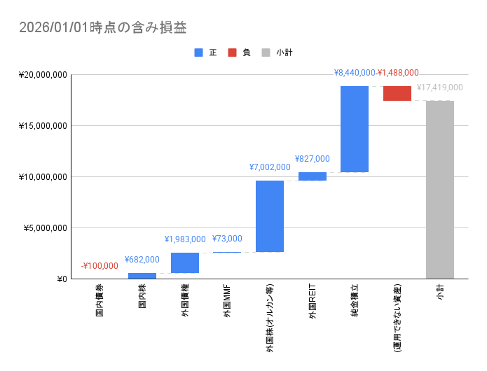 - 年初(2026/1/1)の、購入元本からの含み損益は、\17,419,000