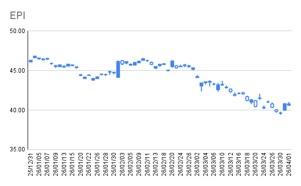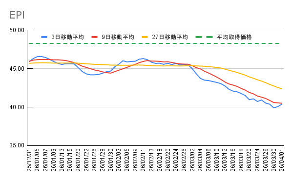 | EPI | 614 株 | 48.28 USD | 40.77 USD | 3,995,231 円 -370,037 円 |