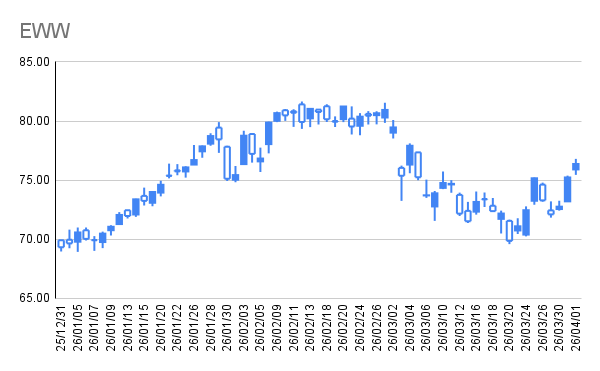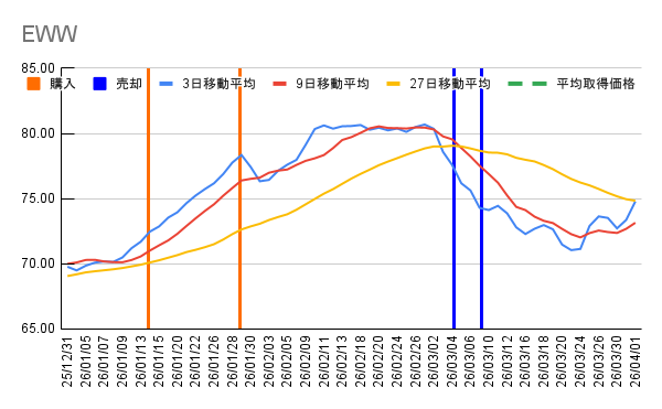 | EWW | 20 株 | 64.39 USD | 76.37 USD | 243,773 円 +50,033 円 |
