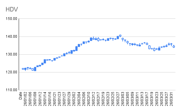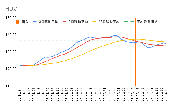 | HDV | 11 株 | 136.48 USD | 133.97 USD | 235,197 円 -4,424 円 |