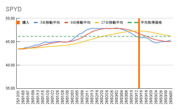 | SPYD | 32 株 | 46.15 USD | 45.35 USD | 231,611 円 -4,101 円 |