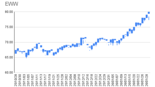 株式 2026/01/29 EWW成買結果 EWWEWWがなぜかずっと上昇しているように見えるので、23株(約30万円分)成買し、保有数量は218株になりました急落しないか怖いのですが・・・約定後保有残高銘柄現在保有数量平均取得価格現在値時価評価額評価損益EWW218 株64.39 ... 2026.01.31 株式