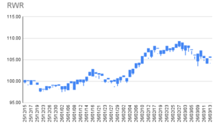 株式 2026/03/13時点 RWR成売結果、利益+20,654円、及びHDV,SPYD成買結果 RWRRWRを更に下がっているように見えたので、ほぼ全部売却として30株成売りし、+20,654円の利益確定になり、残りは3株となりました約定後保有残高銘柄現在保有数量平均取得価格現在値時価評価額評価損益RWR3 株104.44 USD10... 2026.04.02 株式